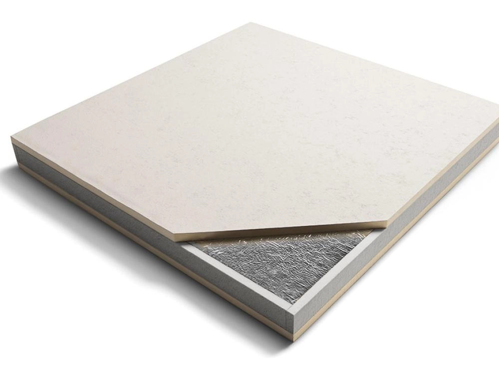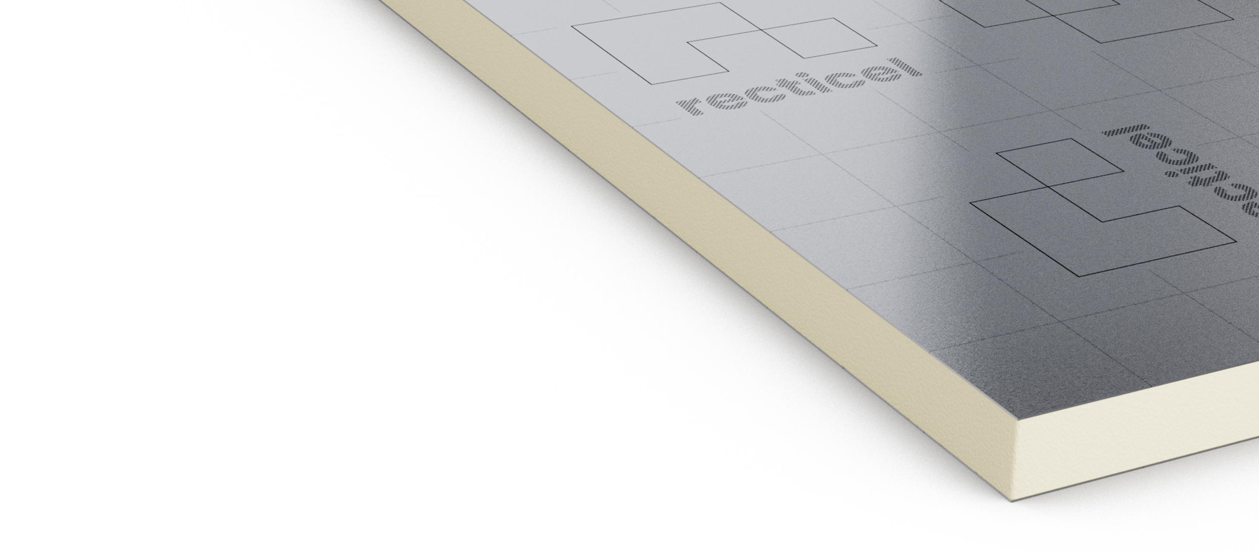 Rectangular silver and white insulation panel.