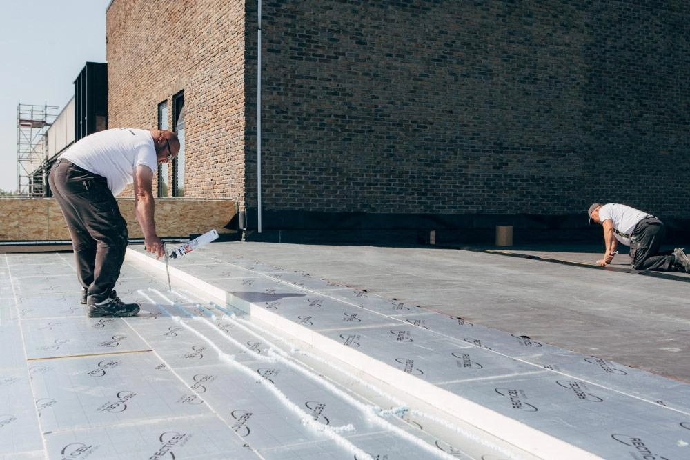 EPDM is een synthetische rubberfolie die zeer elastisch, duurzaam en weerbestendig is. De hechting met de isolatie is cruciaal om een lange levensduur te garanderen.