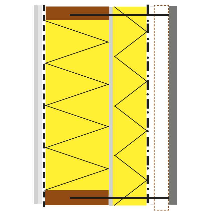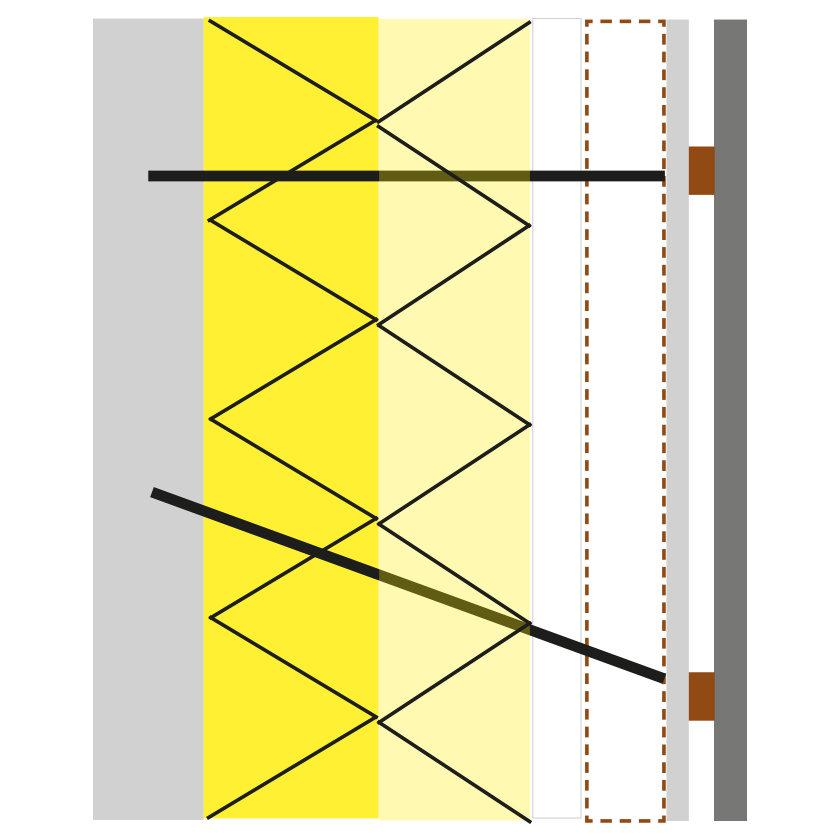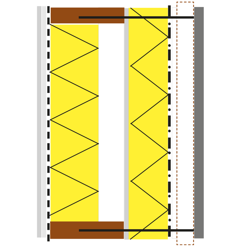 Niet geventileerd (met reflectie) Een spouw is niet geventileerd als open stootvoegen worden toegepast boven onderbrekingen (tgv waterdichte lagen) van het metselwerk. Andere horizontale doorgaande openingen, zoals opening bij dakrand zijn maximaal 10 mm. Volgens de NTA 8800:2022 C.3.2 (p.751); tabel C.3 (p.754)