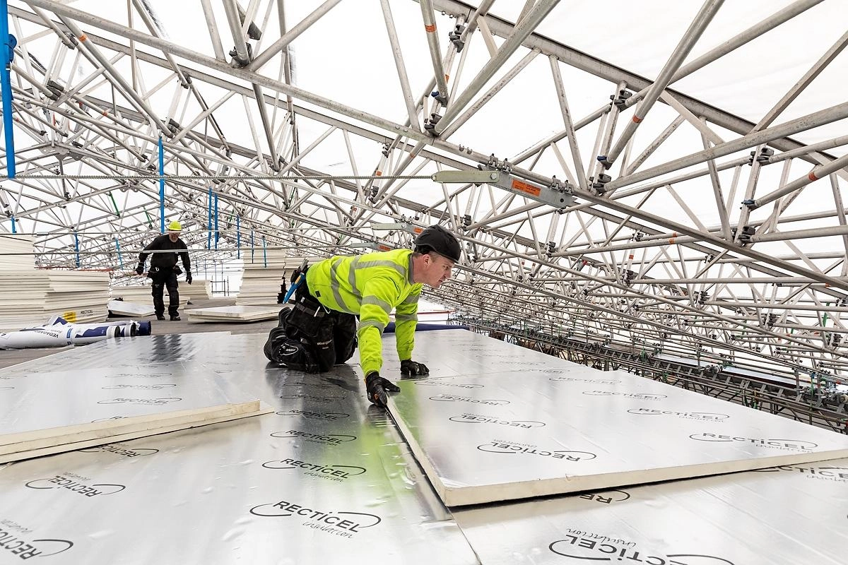 ”Det var möjligt att slutföra ett så stort projekt som detta på mycket kort tid tack vare att Recticel's isoleringsskivor är så snabba och smidiga att montera. Vi började bygga det låglutande taket på Sandhamnsgatan 63 i början av februari och det var klart i slutet av mars.